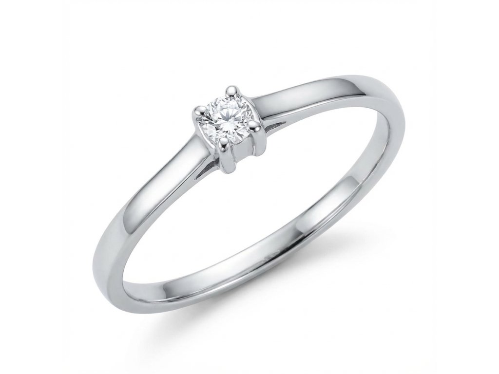 Zlatý prsten s briliantem v bílém 14ti karátovém zlatě ryzosti 585/1000. Průměr ozdoby je 3.3mm, šířka prstenu ve spodní části - šíny 1.2mm., váha 1.35g (velikost 55).