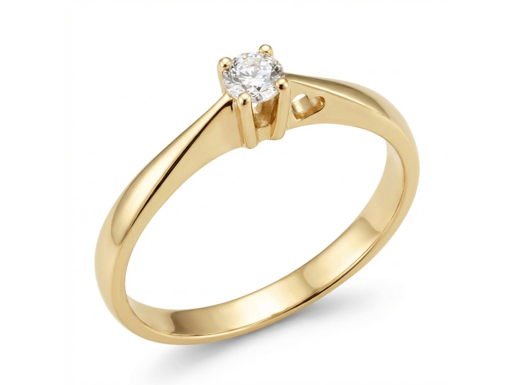 Zlatý dámský prsten s centrálním kamínkem a srdíčkem po boku