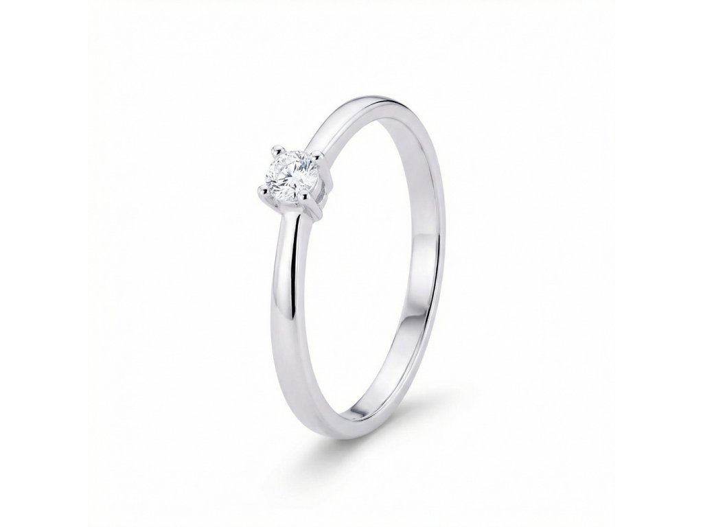 Zásnubní prsten se zirkonem v bílém zlatě.
