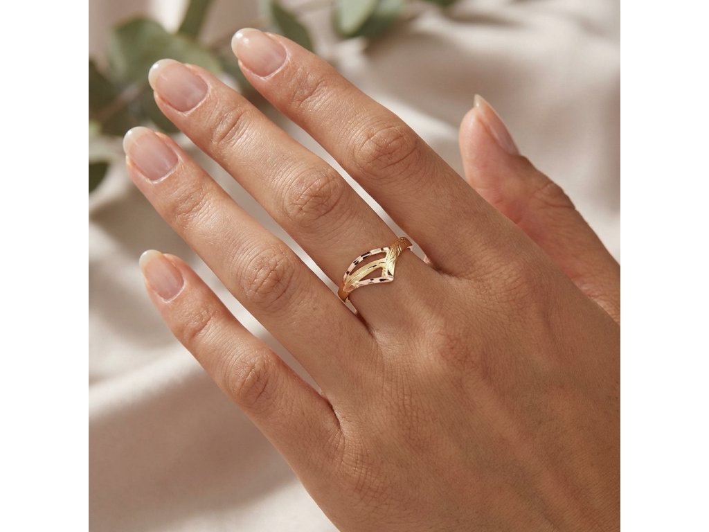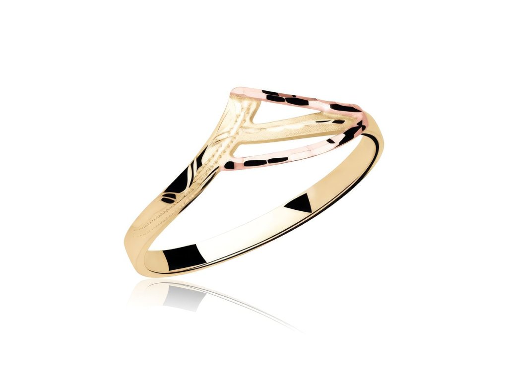 Zlatý dámský prsten ve tvaru špičky v kombinaci žlutého a červeného zlata