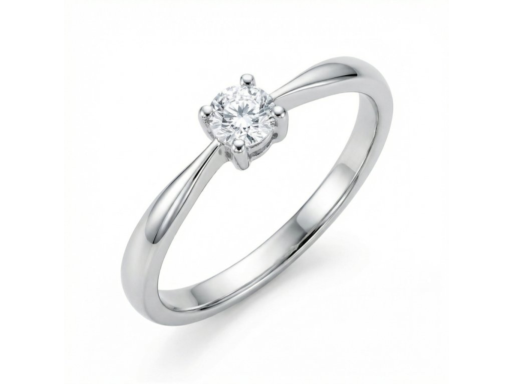 Zlatý zásnubní prsten se zirkonem v bílém zlatě .